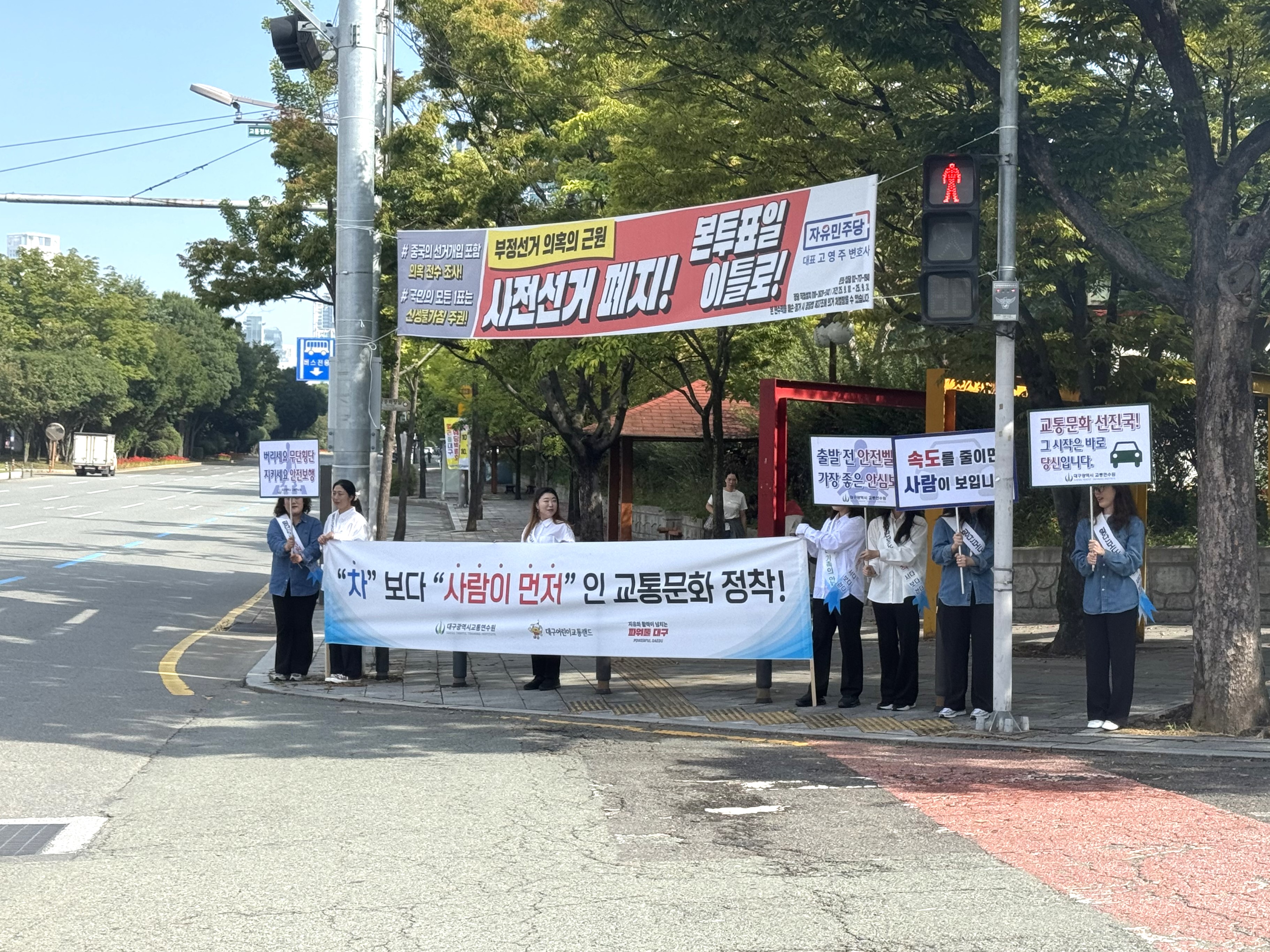 어린이세상 삼거리에서 교통 안전 캠페인을 실시하였습니다.
